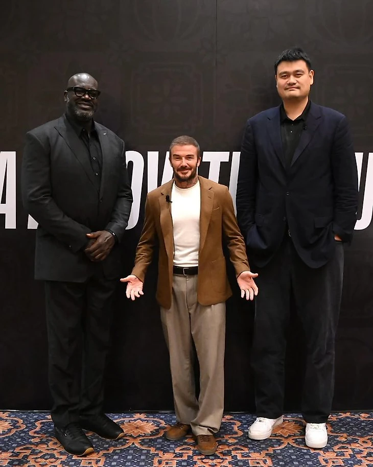 Дэвид Бекхэм сделал смешное фото с легендарными центровыми Шакилом О’Нилом и Яо Мином.