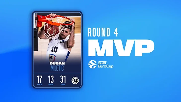 «Клуж» идет в Еврокубке с результатом 2-2. Милетич набирает 13,5 очка, 9,8 подбора, 2,8 передачи, 2 перехвата и 1 блок-шот в среднем.
