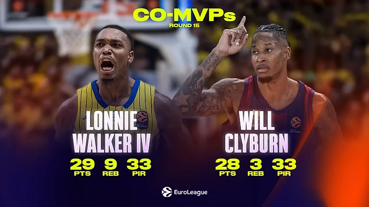 Лонни Уокер и Уилл Клайберн разделили награду MVP 15-го тура Евролиги