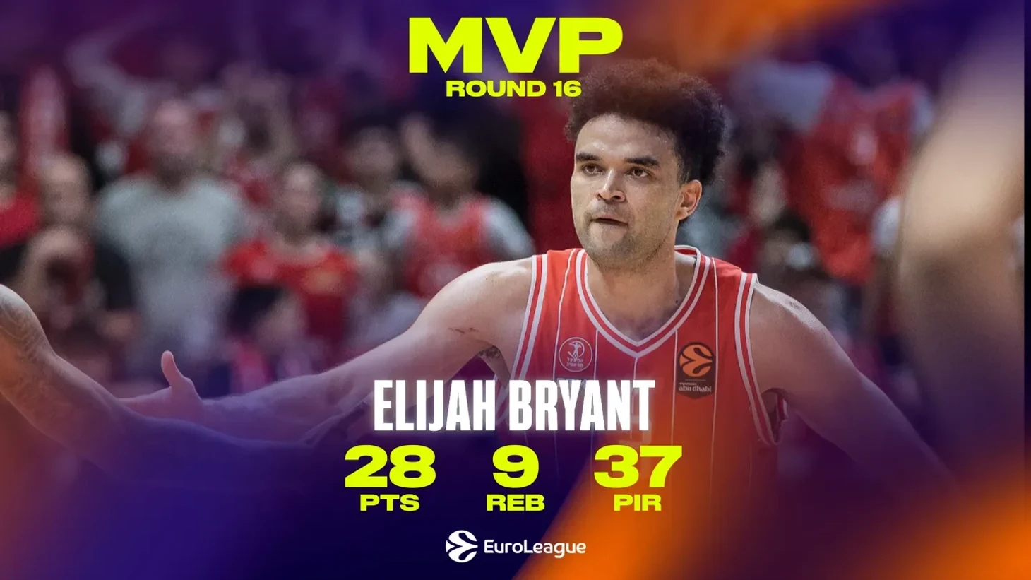 Самым ценным игроком 16-матчей Евролиги стал защитник «Хапоэля» Элайджа Брайант. Команда из Тель-Авива обыграла «Црвену Звезду» со счетом 84:78.