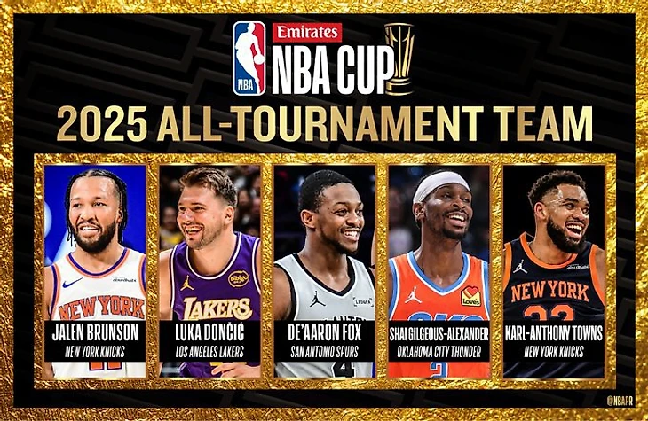 НБА представила символическую пятерку Кубка НБА. В нее попали защитники Джейлен Брансон («Нью-Йорк»), Лука Дончич («Лейкерс»), Шэй Гилджес-Александер («Оклахома»), Де’Аарон Фокс («Сан-Антонио») и центровой Карл-Энтони Таунс («Нью-Йорк»).