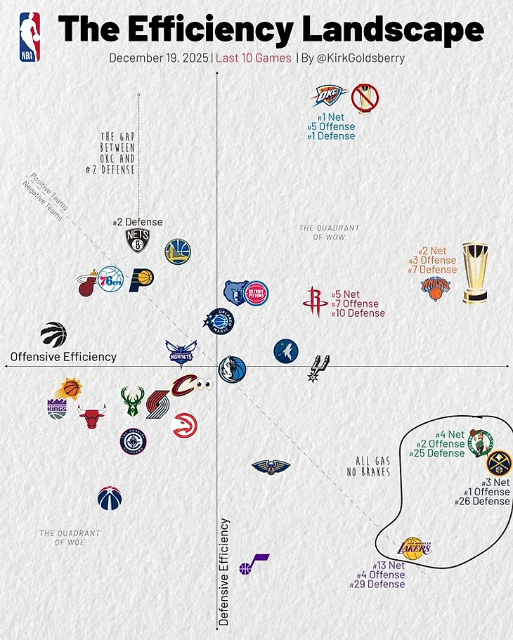 Аналитик Кирк Голдсберри выложил новый график эффективности клубов НБА.
