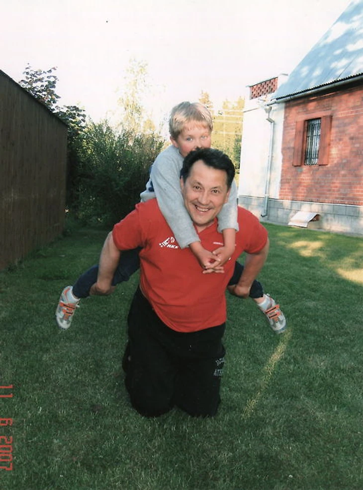 Позитивное фото. Это я с младшим сыном Гошкой на даче.