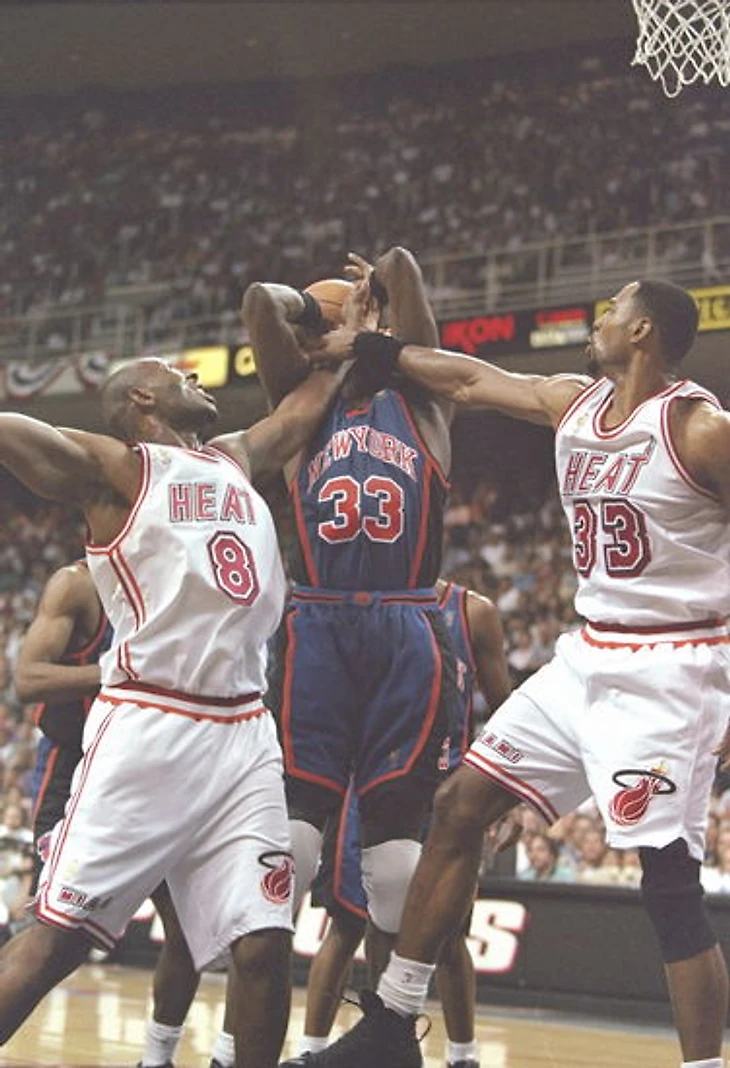 Отработав в «Нью-Йорке» четыре сезона, Пэт Райли сбежал в «Майами», для начала спровоцировав разногласия между руководством команд. Райли не понадобилось много времени, чтобы поднять новый клуб, который стал сильно напоминать его предыдущее творение – не ведающих жалости «никербокеров». Случилось так, что с 1997-го по 2000 годы две дружины сражались в плей-офф четыре раза подряд, сыграв максимальное количество матчей в каждой серии. Такое противостояние было обречено на кровопролитие, и агрессивная природа коллективов проявилась довольно быстро. На радость болельщикам, самое яростное и сокрушительное соперничество в истории НБА выделялось не только драками, скандалами и дисквалификациями, но героизмом в клатч-тайм и даже дружбой между двумя самыми заметными его участниками. Старые друзья, выпускники Джорджтаунского университета Патрик Юинг и Алонзо Моурнинг обедали после каждой игры, дабы хоть как-то сгладить накапливавшиеся противоречия и сохранить добрые отношения. Судя по тому, что в 2003 году выходец с Ямайки готов был отдать больному Моурнингу собственную почку, им это удалось.