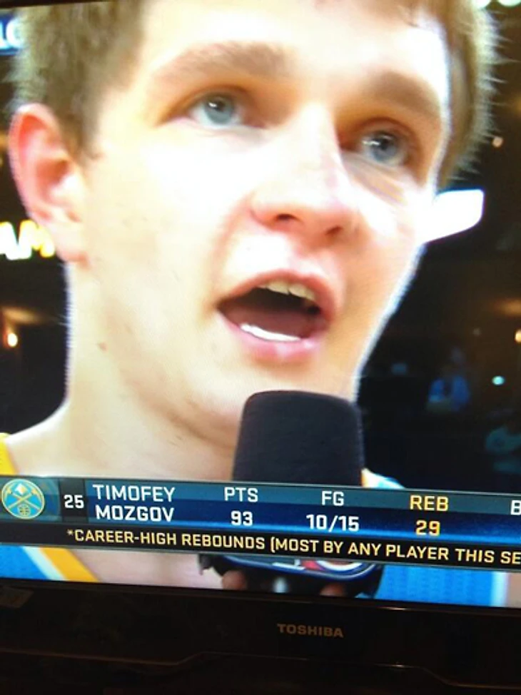 Телеканал TNT в своей статистической выкладке после матча «Уорриорз» – «Наггетс» написал, что россиянин Тимофей Мозгов набрал 93 очка. На самом деле центровой записал на свой счет 23 очка.