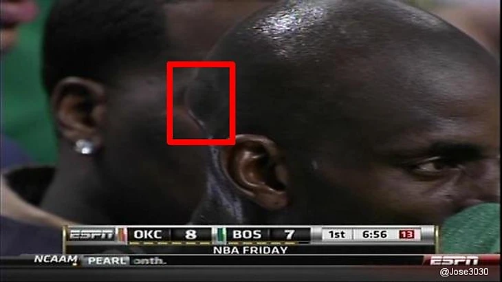 Голова Кевина Гарнетта попала под локоть одного из «малышей» «Оклахомы», чья личность так и не была установлена.