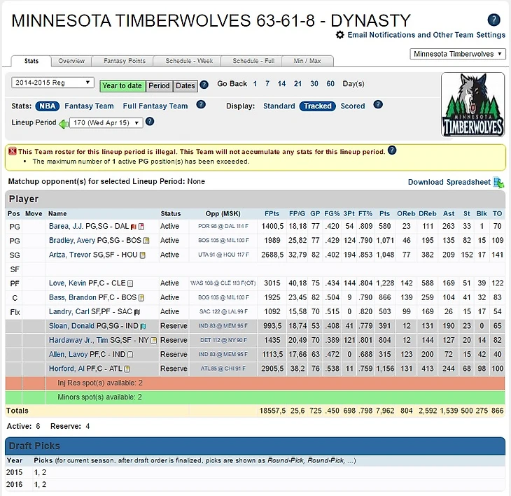 6) From MIN: R.Hibbert / From DAL: 1(8)-2015