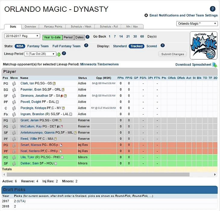 Вот такие парни начнут сегодня борьбу в чемпионате. Так как своего пика нет, сливать уже нет смысла, да и состав вроде бы подобрался. Может быть, не самый сильный, но на ПО могу надеяться. Возможны косметические трейды по ходу сезона, но только ради каких-нибудь проспектиков, или пичка на перспективу. В общем и целом, состав мне очень нравится и мне будет интересно следить за своими ребятами.