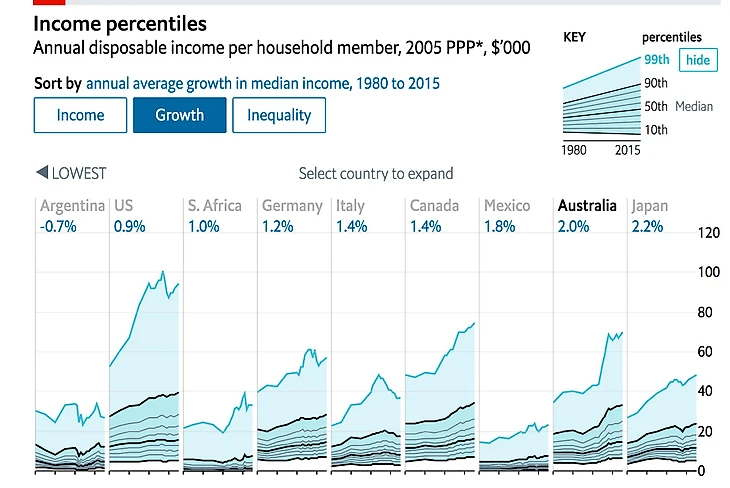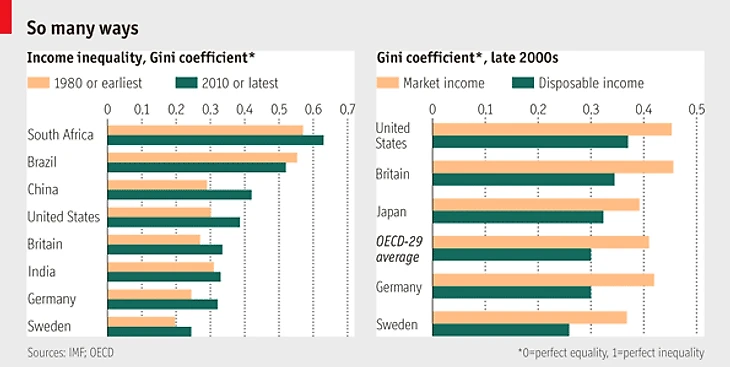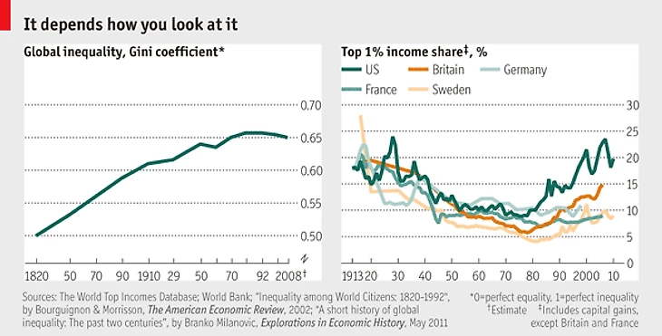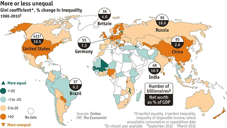 С точки зрения экономики все довольно просто. Не секрет – и это подтверждает экономическая статистика – что 90е и нулевые стали периодом стремительного расслоения как общества развитых стран (особенно англосаксонских), так и развивающихся (например России и Китая) - и по сути всего мира, где больше, где меньше. Причем в отличие от прежних буржуазных революций и классовых войн сейчас проблема не столько в разнице уровня доходов как таковых – и с той и с другой стороны есть и относительно богатые люди, и средний класс – и если смотреть не внутри стран, а по человечеству вообще то и внутри этих фронтов будет очень сильное расслоение – но проблема скорее в росте доходов в последние десятилетия, который был крайне и крайне неравномерен.