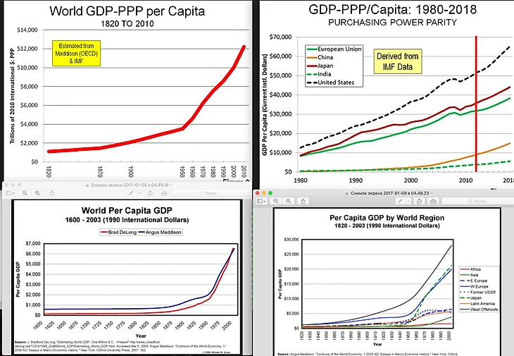И действительно данные формы и ценности доминировали следующие 25 лет, и это был период гигансткого экономического и технологического прорыва человечества – особенно период до 2008 года. ВВП на душу населения, общее мировое потребление, рост мировой торговли, глобальное сокращение бедности и развитие и внедрение новых технологий в этот период было беспрецедентным в истории человечества. Отдельные страны бывало развивались быстрее на протяжении аналогичного периода времени – но чтобы все человечество так мощно – никогда. Казалось бы это был грандиозный триумф этих самых идей.
