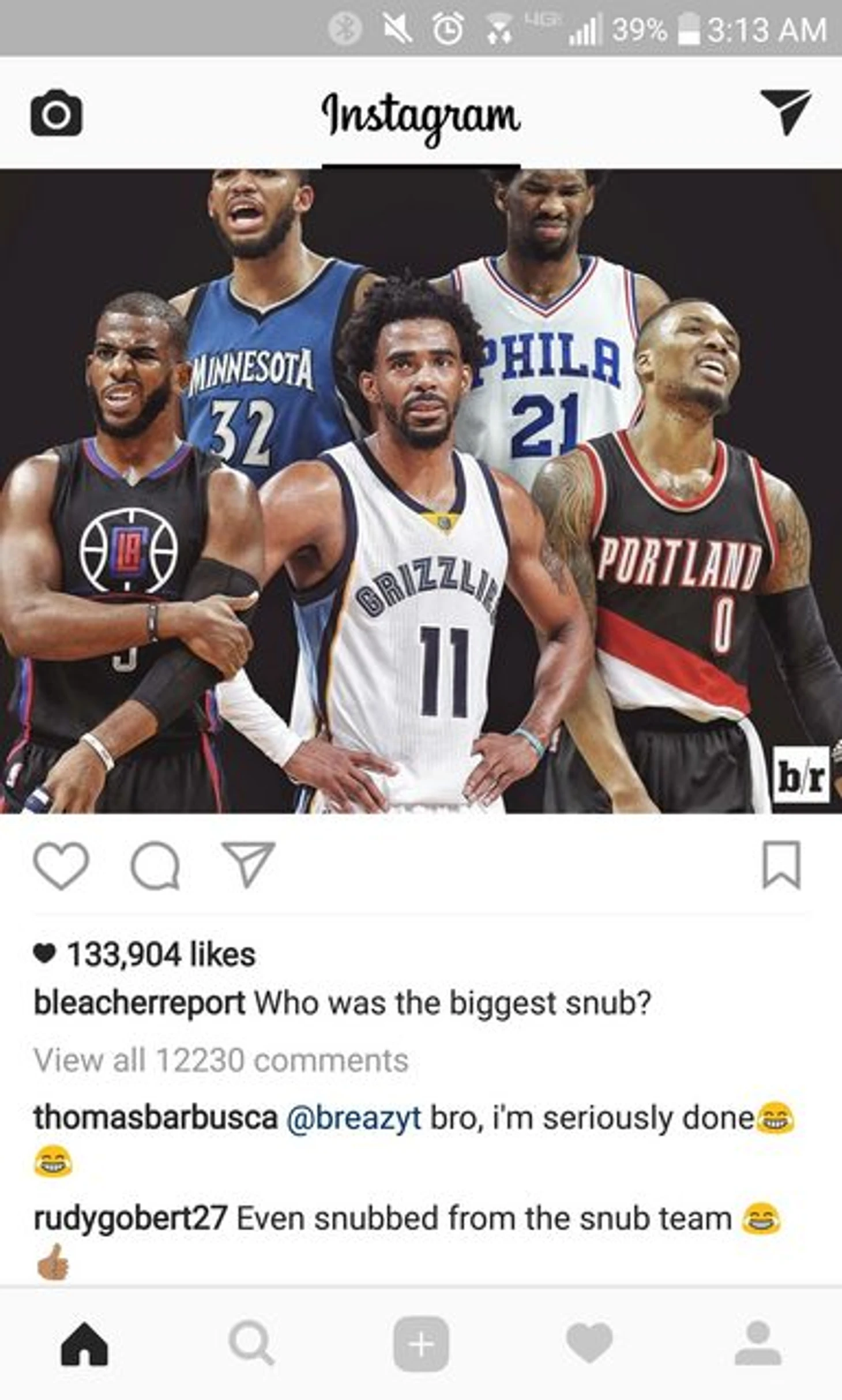 Руди Гобер не попал даже в команду звезд, которых не взяли на Матч всех звезд.