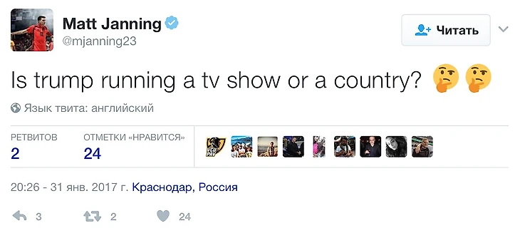 — Ты уже упоминал про сериал «Преемник», а недавно в твиттере ты задавался вопросом, чем именно управляет Дональд Трамп, — страной или ТВ-шоу. Сам голосовал на последних выборах?