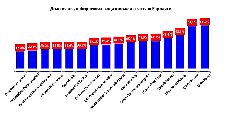 Неудивительно, что именно защитники сейчас становятся главными поставщиками очков. К примеру, в ЦСКА и УНИКСе их вклад в результативность превышает 60%.