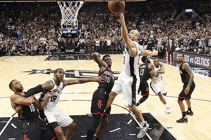 Несколько раз казалось, что «Сперс» уже не нужно так выкладываться: у «Хьюстона» оставалось комфортное преимущество. Но тут Джонатан Симмонс выхватывал мяч у Хардена, Пэтти Миллс немыслимым образом дотягивался до мяча и выпрашивал фол, Олдридж забирал отскок, Дэнни Грин попадал издали, а Ману Джинобили делал все то, что вытворял еще с развевающейся шевелюрой.