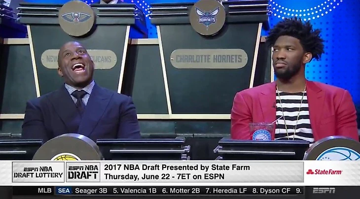Хоть Роб Пелинка и сказал, что у них есть стратегия на тот случай, если пик все-таки уйдет в Пенсильванию, но согласитесь, лучше иметь топ-2 пик, чем не иметь вообще ничего (28 не в счет). Вообще-то эмоции Мэджика Джонсона показывают все. Фанаты надеются, что этот пик станет последним кирпичиком в фундамент новой династии, Пелинка уже обдумывает кого можно выгодней затрейдить, Мэджик радуется первой победе в новой должности, а Джинни надеется, что ее братец будет держаться от всего этого подальше.
