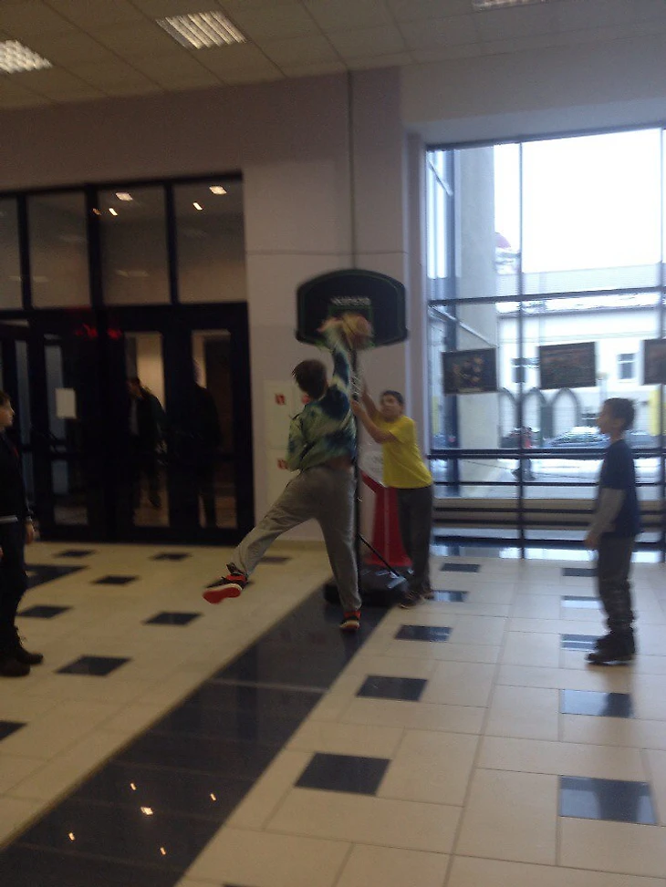 Работа с болельщиками – показатель как надо работать в холле с публикой. Здесь Вам и кольца маленькие для соответственно маленьких детей, игровые приставки, где любой желающий может сыграть, отстой лишь очередь. Есть стенды, где можно вблизи посмотреть на оригинальные кроссовки гиганта Вранеша или на майки Нахбара и Зисиса.