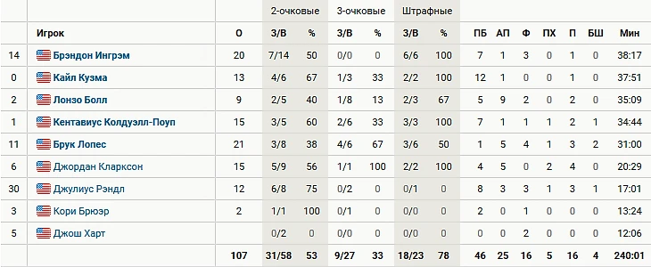 Кузма / дабл-дабл, уверенно и на уровне, мог бы набрать и больше, но чувствовал игру и не тянул одеяло на себя, когда было кому бросать. 13/12/1 при 1 потере. Кстати супер горячий отрезок Лейкерс, когда преимущество из +10 превратилось в +22 начал именно Кайл своей трёшкой с 9 метров;