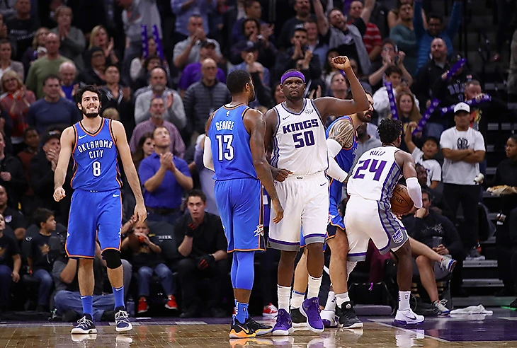 Впервые за 7 матчей «Сакраменто» вышел на игру в том же стартовом составе, что и на прошлую, – и сразу оконфузился. Домашний матч с «Оклахома-Сити» начался отвратительно: первые очки были набраны лишь на шестой минуте, стартовая четверть закончилась со счетом 10:25, из первых 25 бросков цели достигли всего четыре. Особенно уныло выглядели игроки стартовой пятерки: Джордж Хилл, Гарретт Темпл, Богдан Богданович, Зак Рэндольф и Уилли Коули-Стайн.