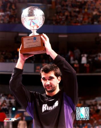 Хотя помнить будут Предрага в Сакраменто не за число проведенных игр, а за число выброшенных трехочковых бросков. Естественно, никто в истории «королей» на сделал столько дальних попаданий, сколько серб. Все мировое сообщество с недавних пор знает, кто и с какими результатами занимает первую и вторую строчки в списке лучших трехочковых снайперов НБА, но ведь и за третье место может в скором времени развернуться борьба – причем между партнерами по команде. Если Джейсон Кидд будет снабжать Пежу мячами, тот вполне может потеснить самого Кидда с третьей строчки.