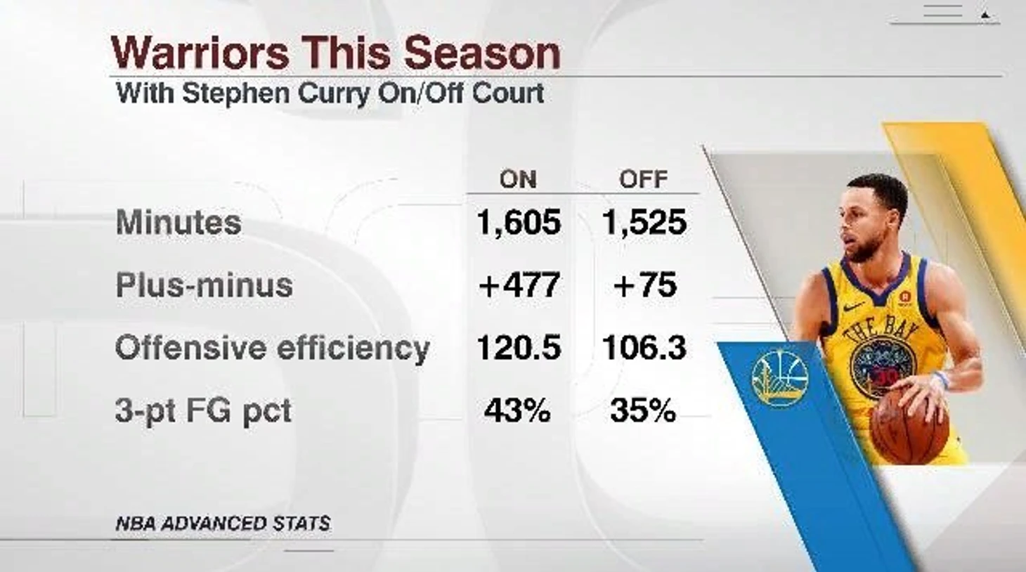 Статистика «Уорриорз» в текущем сезоне со Стефеном Карри на площадке и без него.