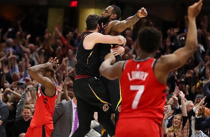 Форвард «Кливленда» Леброн Джеймс принес своей команде победу в 3-м матче с «Торонто», пройдя через всю площадку и забив с сиреной в прыжке одной рукой.