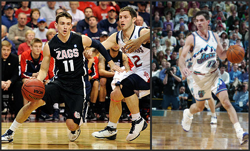 Сейчас по ESPN беспрерывно показывают студенческий баскетбол, и смотреть все подряд нет ни возможности, ни желания. Так что я обычно проверяю, что за университеты играют, и если это не кто-то из моих любимцев, переключаю. Но вот в какой-то из вечеров на прошлой неделе не было ни Дьюка, ни Нотр Дама, ни даже местного Нортвестерна, и я остановился на матче Ст. Мэриз и Гонзаги. За первых я болел в прошогоднем Мартовском Безумии, очень уж задорно они играли. Про Гонзагу я знаю только одно – в этом колледже в свое время выступал один из моих самых любимых баскетболистов, лидер NBA по числу передач и перехватов за всю историю, разыгрывающий Utah Jazz Джон Стоктон.