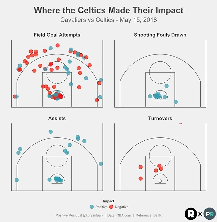 У «Бостона» даже не оказалось никого, кто попадал бы выдающимся образом. У них всего 43% с игры и 32% из-за дуги.