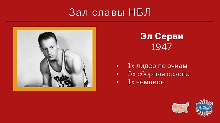 Одним из тех, кто до самого конца не перебежал, даже когда его команда «Рочестер Ройалс» туда вошла, был Эл Серви. В 1948 году он ушел в «Сиракьюс», оставшиеся в НБЛ, в то время как «Рочестер» отправился в более богатую, но менее талантливую лигу. Но все это будет через год, а пока Эл Серви – защитник «Роайлс», только что уступивший в финале НБЛ «Чикаго» Майкана.