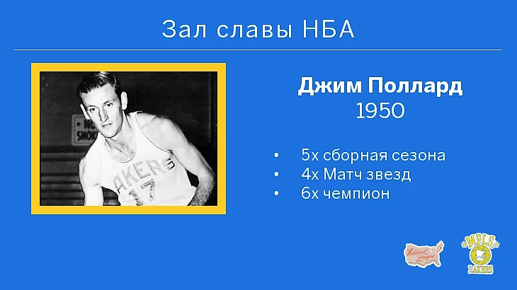 Поллард был самой первой звездой «Лейкерс» – когда клуб реорганизовался из «Детройт Джемс», Джордж Майкан еще играл в ПБЛА за «Чикаго Гирс». Поллард был подписан первым, а когда через неделю «Лейкерс» достался Майкан, клуб уже было вовсе не остановить.