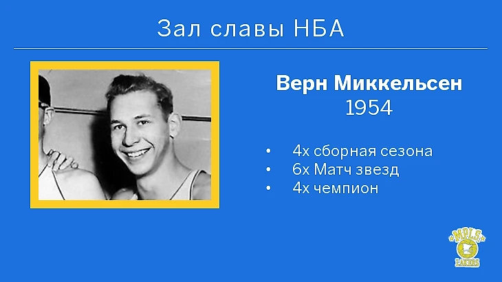 Форвард «Миннеаполис Лейкерс» Верн Миккельсен – в Зале славы НБА.