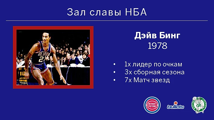 Защитник «Детройт Пистонс» Дэйв Бинг – в Зале славы НБА.
