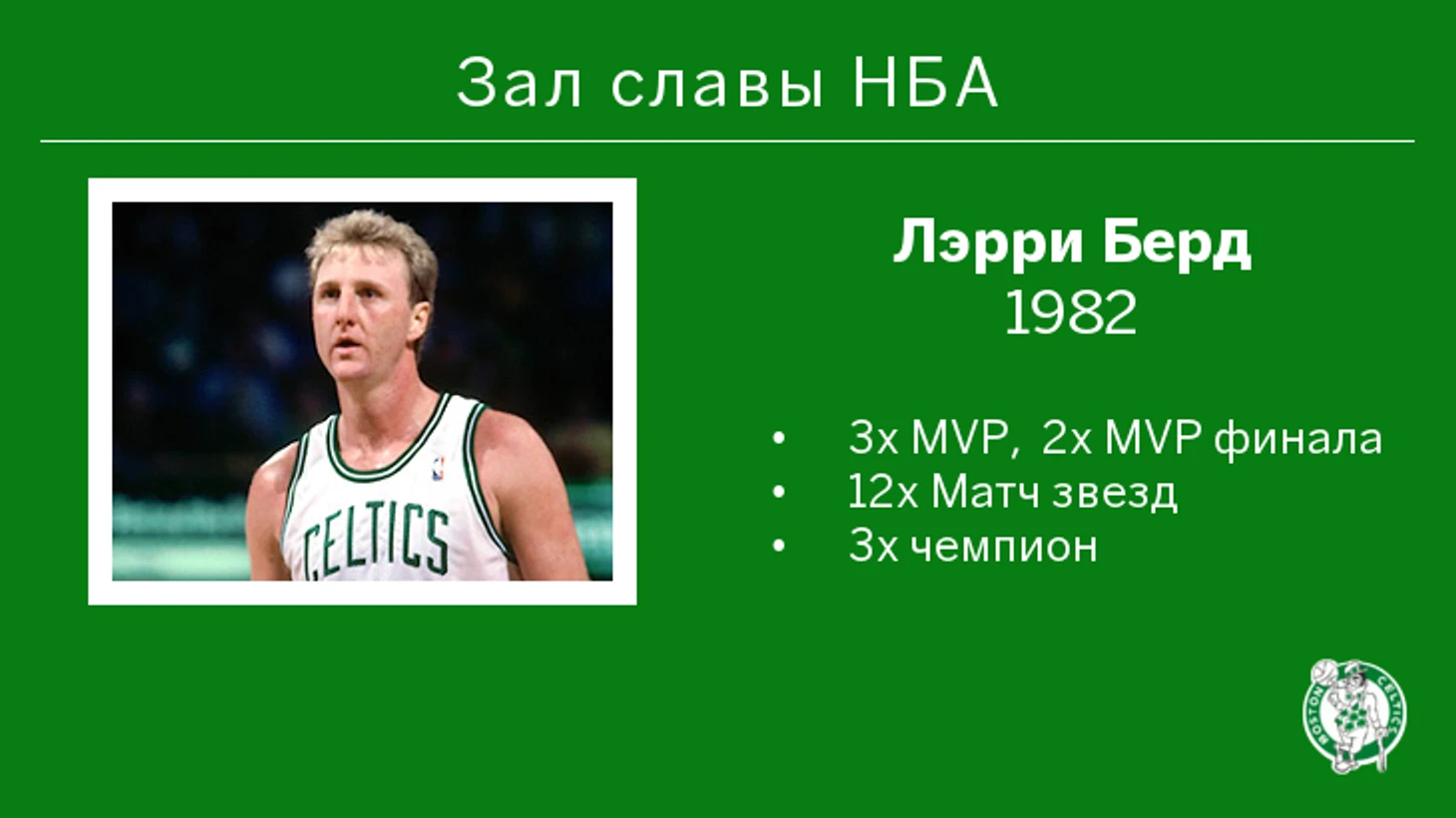 Форвард «Бостон Селтикс» Лэрри Берд – в Зале славы НБА.