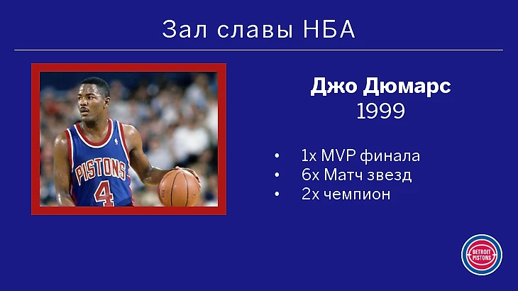 Защитник «Детройт Пистонс» Джо Дюмарс – в Зале славы НБА.