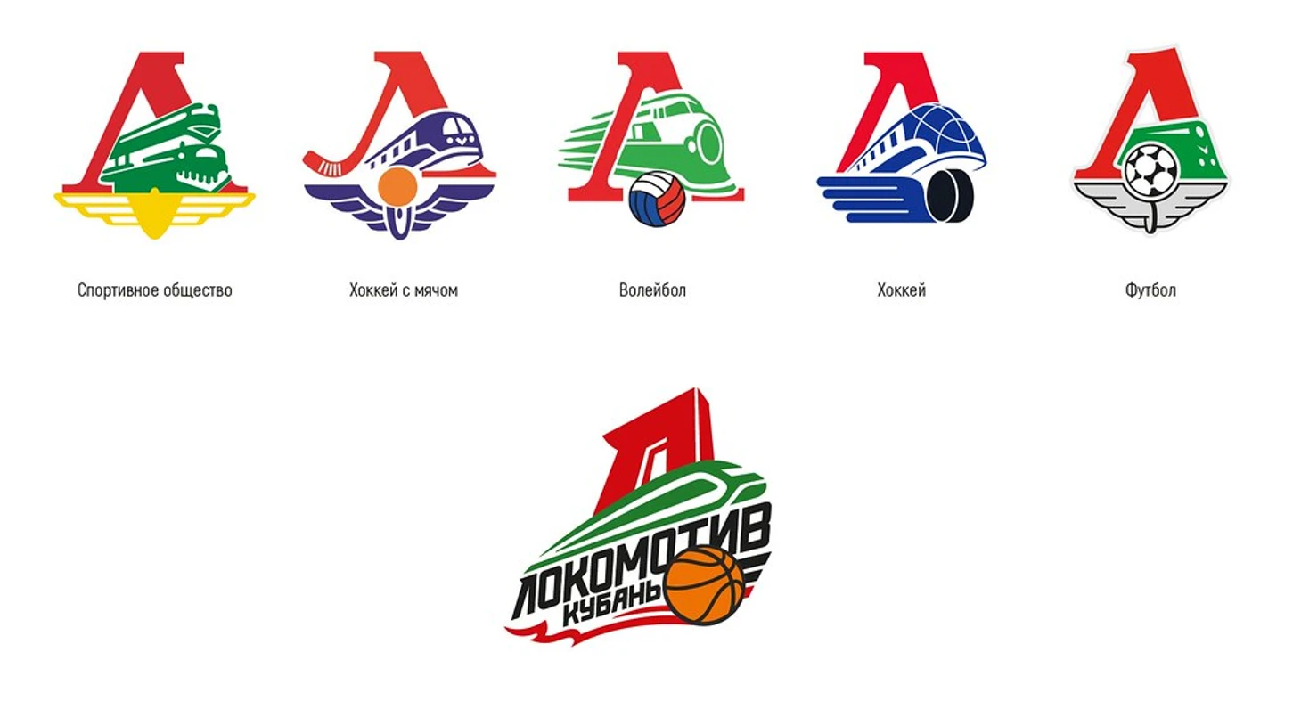 Повторюсь, спортивное общество «Локомотив» — один из легендарных брендов отечественного спорта. Основные логотипы клубов общества имеют классическую конструкцию, сохраняют преемственность и традиции. Эмблема баскетбольного клуба «Локомотив» серьезно отличается, выпадает из общей концепции.