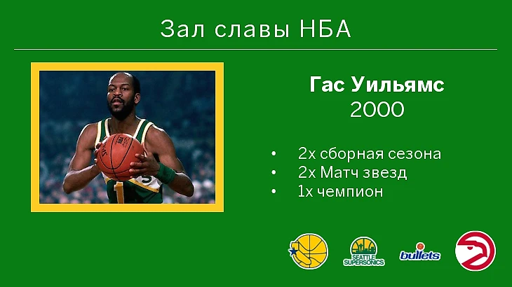 Защитник «Сиэтл Суперсоникс» Гас Уильямс – в Зале славы НБА.