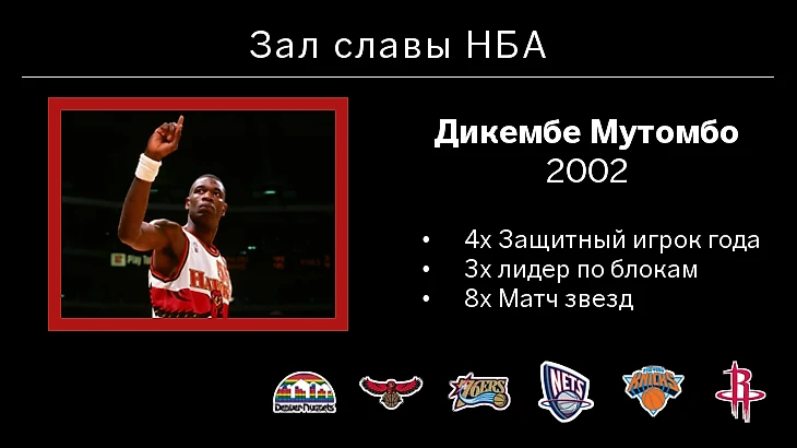 Центровой «Филадельфии Сиксерс» Дикембе Мутомбо – в Зале славы НБА.