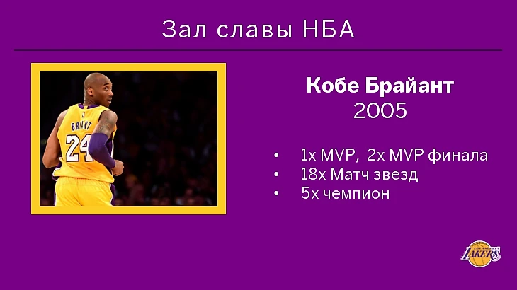 Защитник «Лос-Анджелес Лейкерс» Кобе Брайант – в Зале славы НБА.