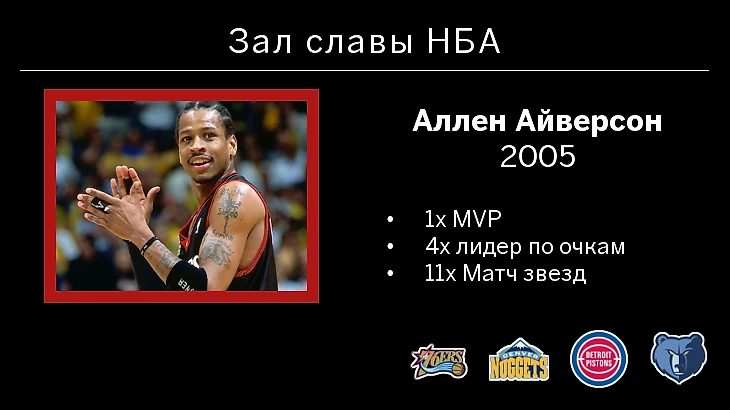 Защитник «Филадельфии Сиксерс» Аллен Айверсон – в Зале славы НБА.