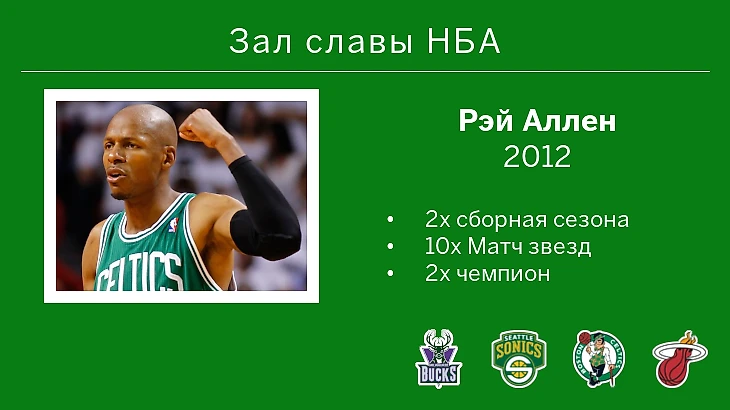 Защитник «Бостон Селтикс» Рэй Аллен – в Зале славы НБА.