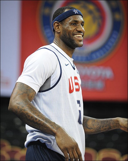 Во время тренировочного лагеря с национальной командой США на левой руке ЛеБрона появилось тату, посвященное новорожденному сыну, Максимусу Брайсу, кстати уже второму.