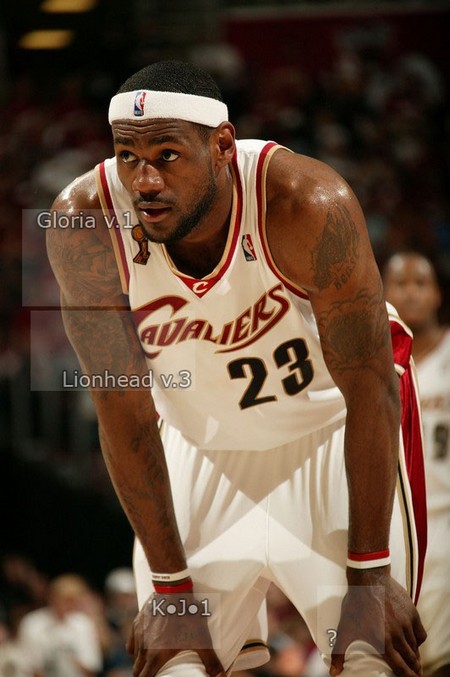 Новая тату перед Финалом НБА 2007 года. Над уже извесной нам головой льва появилось изображение с надписью "Глория". Как Вы уже, наверное, догадались в честь матери. На кисти правой руки появилась также надпись K-J-1, что, вероятно, означает King James 1.0.