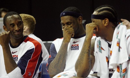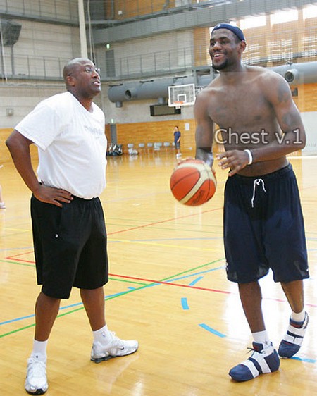 Вообще ЛеБрона очень сложно поймать раздетым по пояс, но как мы видим нынешнему тренеру Лейкерс это удалось. Фото сделано на Чемпионате Мира в Японии в 2006 году. На нем трудно раглядеть татуировку, но по словам Биг Зи на груди у Джеймса есть надпись "Одаренный ребенок".