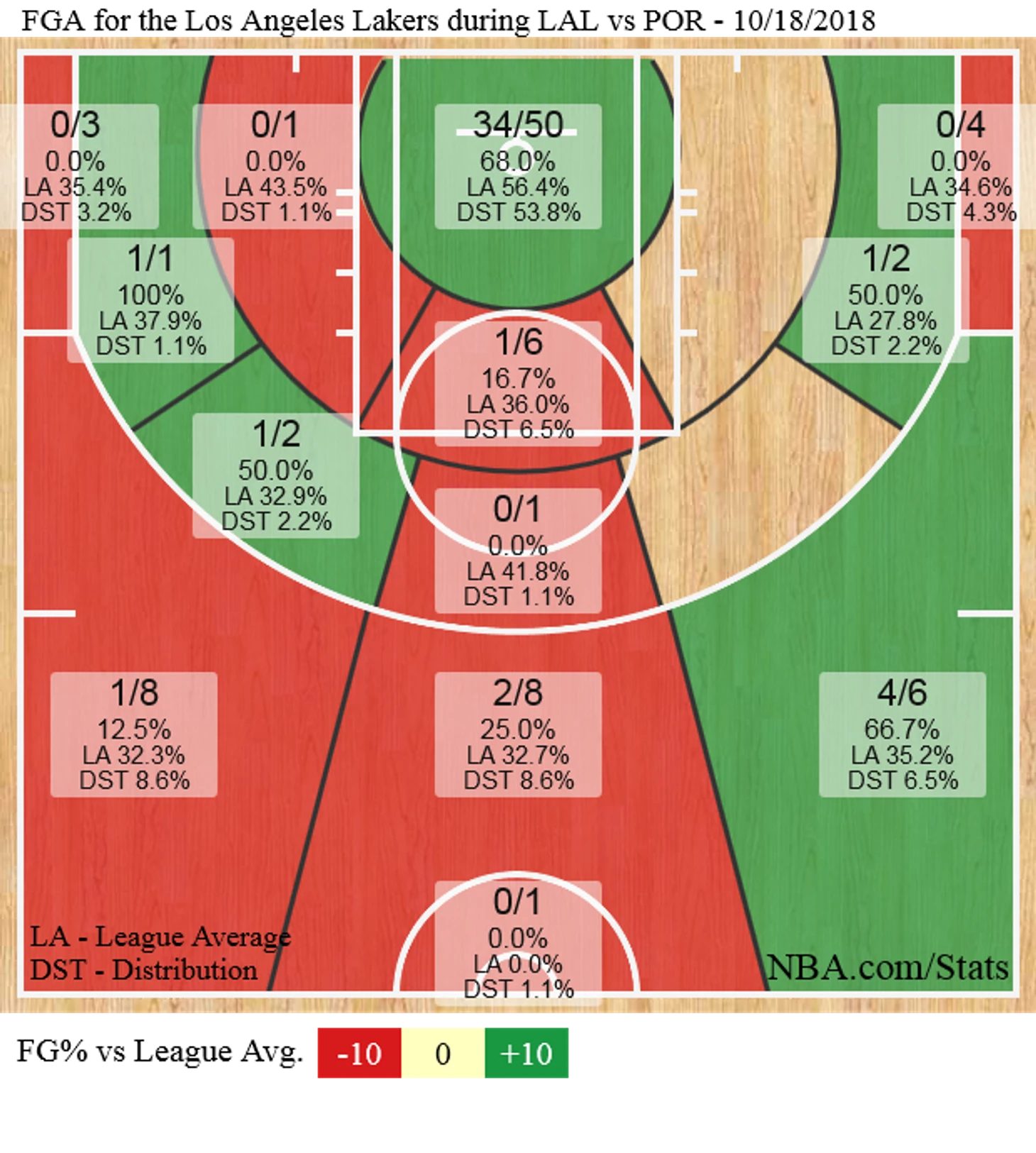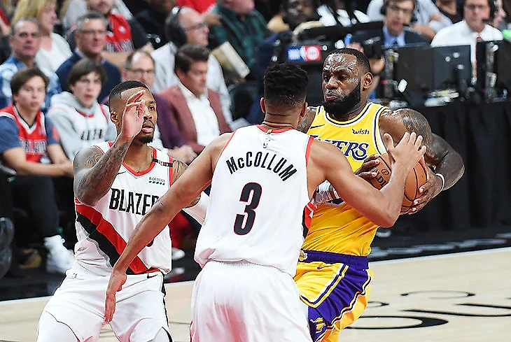 Кажется, что защиты там вообще нет и возникают сложности с подбором (21 очко «второго шанса у «Блейзерс»). Но «Лейкерс» шли на это целенаправленно и сами отпустили Джулиуса Рэндла, так что эксперимент продолжается.