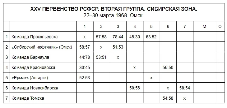 А вот в региональном турнире XXV ПЕРВЕНСТВО РСФСР в Омске (22–30 марта) «Ермак» лавров не снискал, оставшись за чертой призеров. Победителем турнира стала команда Прокопьевска («Ермак» проиграл баскетболистам Кузбасса 52:63), на втором месте — «Сибирский нефтяник» (Омск), на третьем — команда Барнаула (ангарчане уступили алтайцам 52:64).