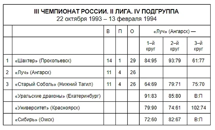 В ноябре, когда на матчи в Ангарск не приехал «Шахтер» из Артема, «Луч» и «Ермак» сыграют еще раз и на этот раз преимущество в счете иркутян не будет крупным 98:111.