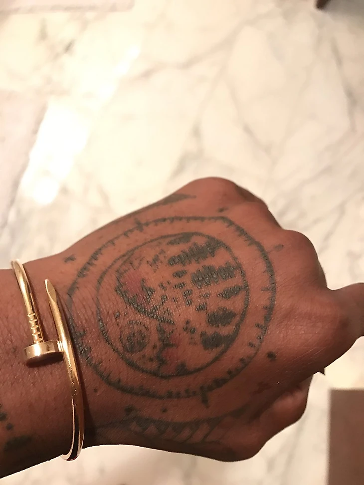 Также на руке Трэвиса набита татуировка с орегонским горным пейзажем — в частности, с видом на гору Маунт-Худ.
