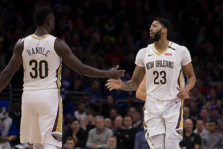 Если возвращаться к левому нижнему краю, где находятся лучшие показатели, также обоих центровых в топ-5 имеет Новый Орлеан. Дэвис никуда не сбежал (хотя если бы и сбежал всё равно бы считался игроком Пеликанс), Рэндл играет на новый контракт. Дэвис замыкает пятёрку среди стартовых центров, Рэндл на одну строчку выше среди запасных. Загвоздка тут в том, что Рэндл такой себе «запасной» : он больше половины игр начал в старте, да вместе они проводят на площадке больше времени, чем по отдельности. Сравните эти цифры с цифрами пары из Денвера, к которой термин «стартовый – запасной» можно применить безо всяких оговорок.