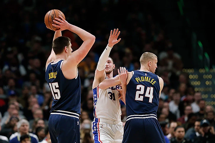 Однако главная фишка Йокича в том, что он чудо как хорош в непрофильном для игрока его габаритов занятии – он элитный распасовщик. Я не буду долго распаляться по поводу его видения площадки и качество паса, в начале сезона на спортсе уже была большая статья про него. Я лишь замечу, что Йокич сейчас идет на девятом месте в НБА по передачам, отдавая их в среднем 7,7 раза за игру. Чтобы понимать масштаб происходящего: до нынешнего сезона Йокича только дважды центровой имел сезонный показатель передач больше 7 – это Уилт Чембермлен в сезонах-1966/67 и 1967/68. Т.е. среди людей, которые не меняют игру и лигу только потому, что им, между играми в баскетбол и с любовницами, пришла в голову какая-то идея, Йокич первый.