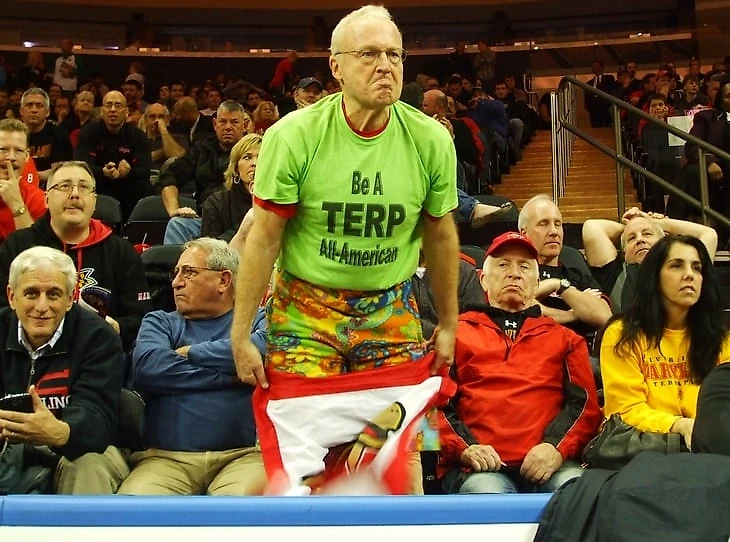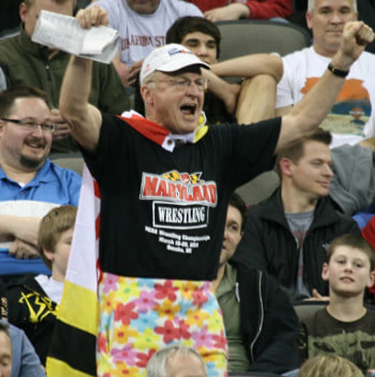 Его спортивная энергия выливалась в разных формах. Сначала на школьных площадках, где он столь же красочно болел за собственных детей: его дочь – профессиональная триатлетка. Затем он неожиданно переключился на борьбу в университете Мэриленда – он болел не только вживую, но и еще писал письма в местные газеты, которые критиковал за отсутствие внимание к такому зрелищному виду спорта.