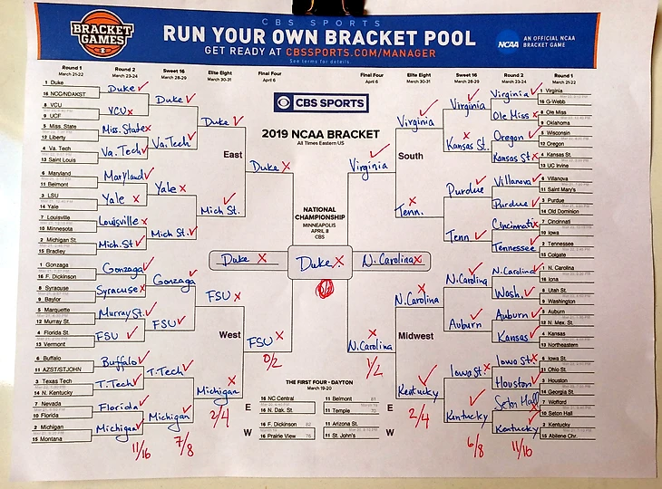Три недели назад №1 «Вирджиния» отставала от №16 «Гарднер-Уэбб» на 14 очков в первом тайме. Болельщики «Кавальерс» с ужасом начали вспоминать прошлогодний турнир. Да, тот самый, в котором впервые в истории турнира команда из 16-й корзины, «Университет Мэриленда – Балтимор Каунти», обыграла команду из первой, «Кавальерс» университета «Вирджинии». Прошлогодний провал еще больше акцентировал особенность «Вирджинии» не оправдывать ожидания болельщиков и экспертов. Ведь сколько раз за последние годы «Вирджиния» спотыкалась на самом немыслимом месте. Но в этом году сошлись звезды, и команда, которая изобретала новые способы проигрывать, на протяжении всего турнира вырывала победу любой ценной. И теперь «Вирджиния Кавальерс» впервые стали чемпионами баскетбольного турнира НСАА.